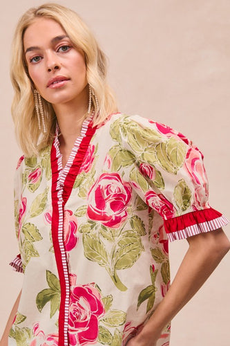 Floral Printed Woven Contrast Edge Ruffled Blouse