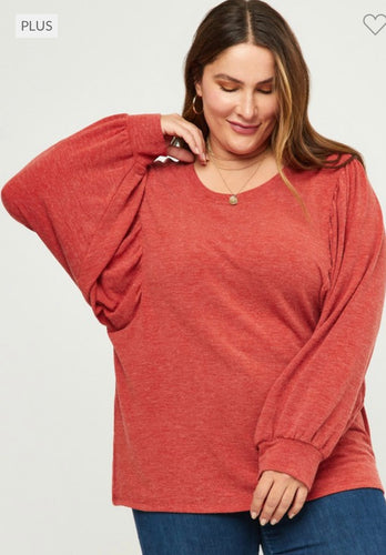 Rust Puff Sleeve Knit Top