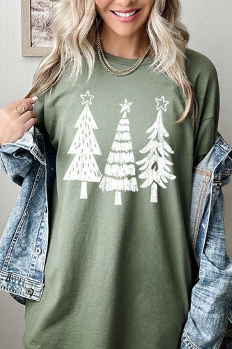Military Green Christmas Trees Graphic Heavy Cotton Tee
