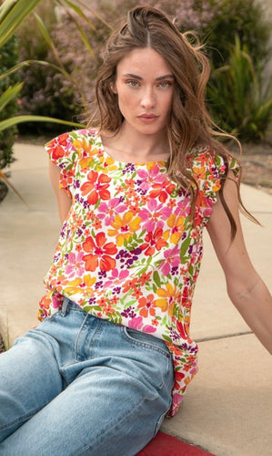 Ruffled Short Sleeve Floral Top