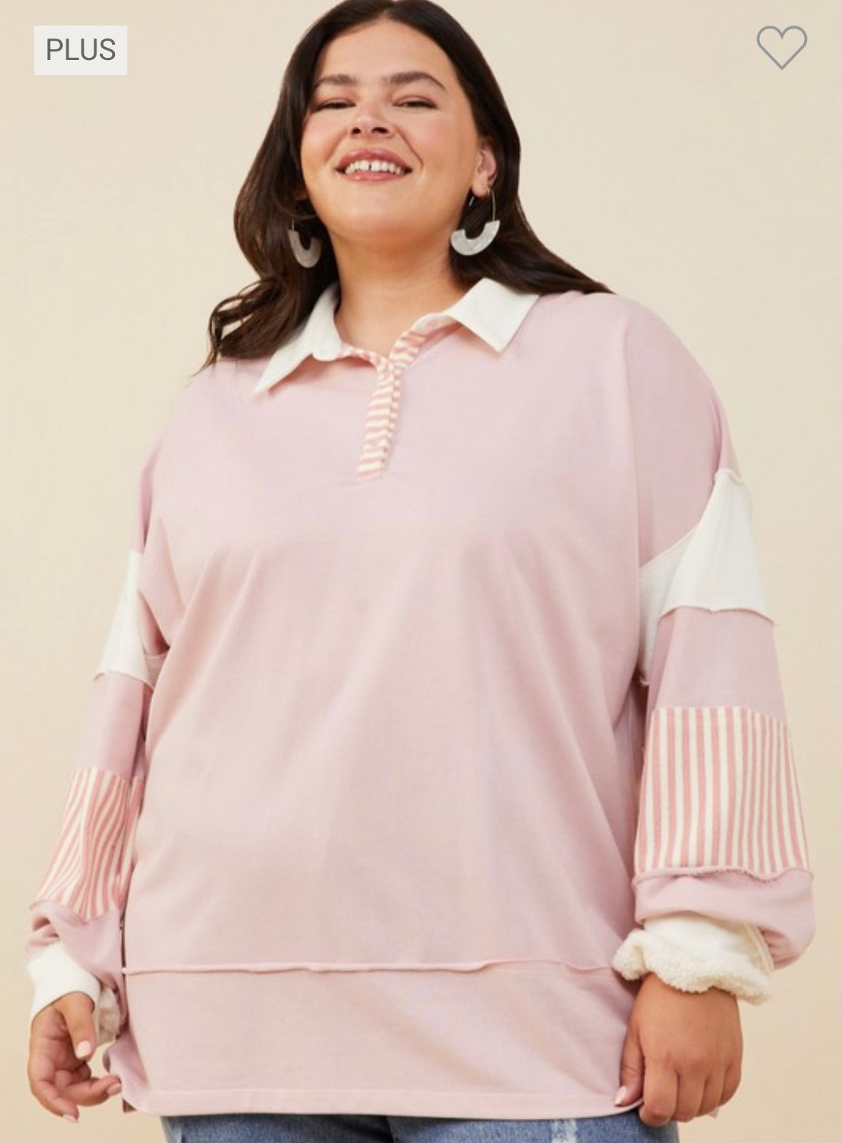 -Mixed Media Print Blocked Knit Rugby Shirt