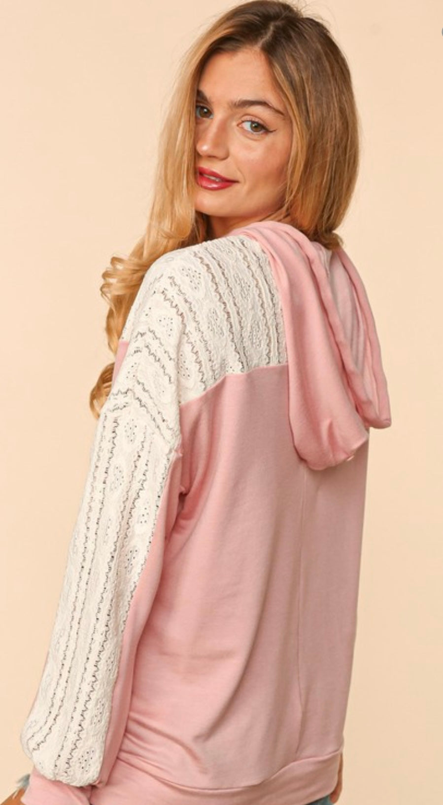 -Eyelet Lave Color Block Yoke Oversized Long Sleeve
